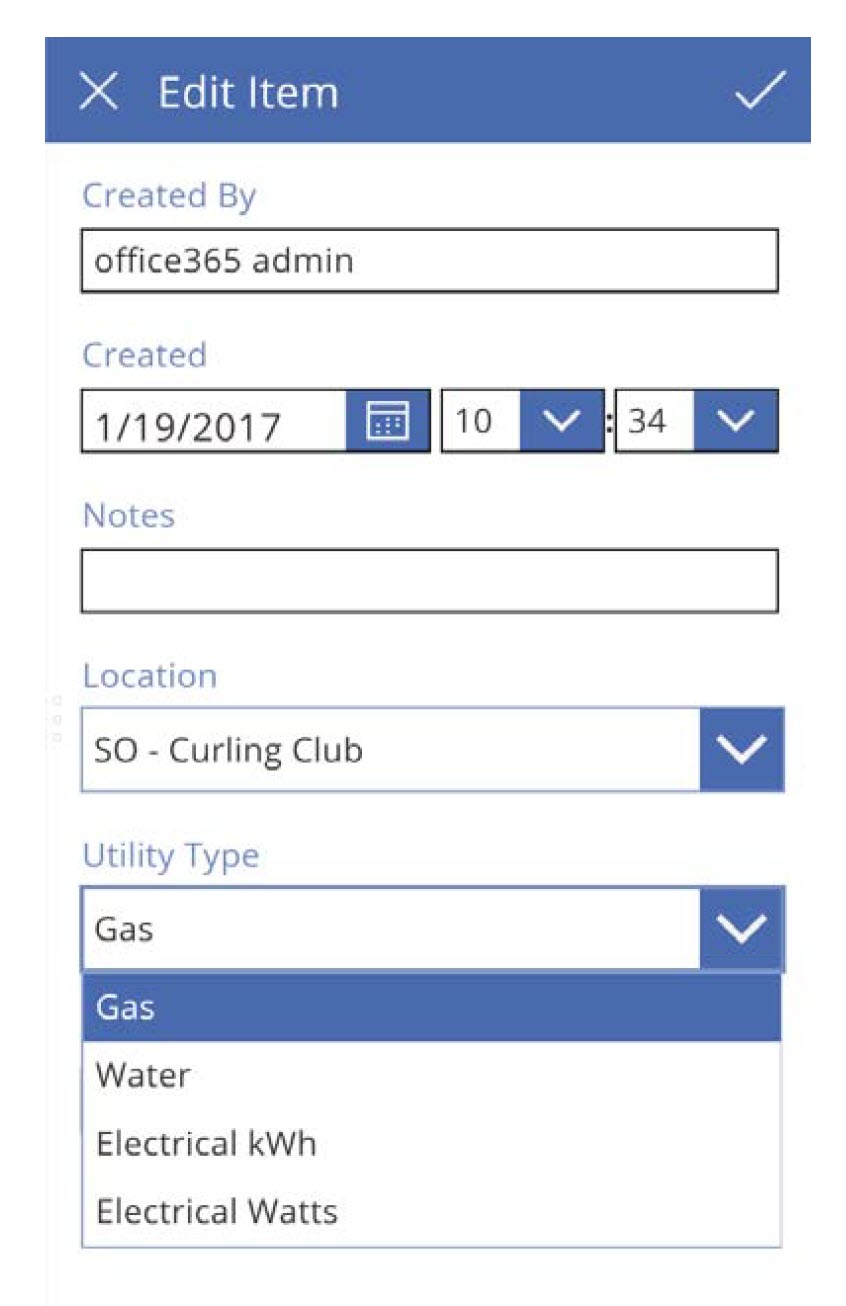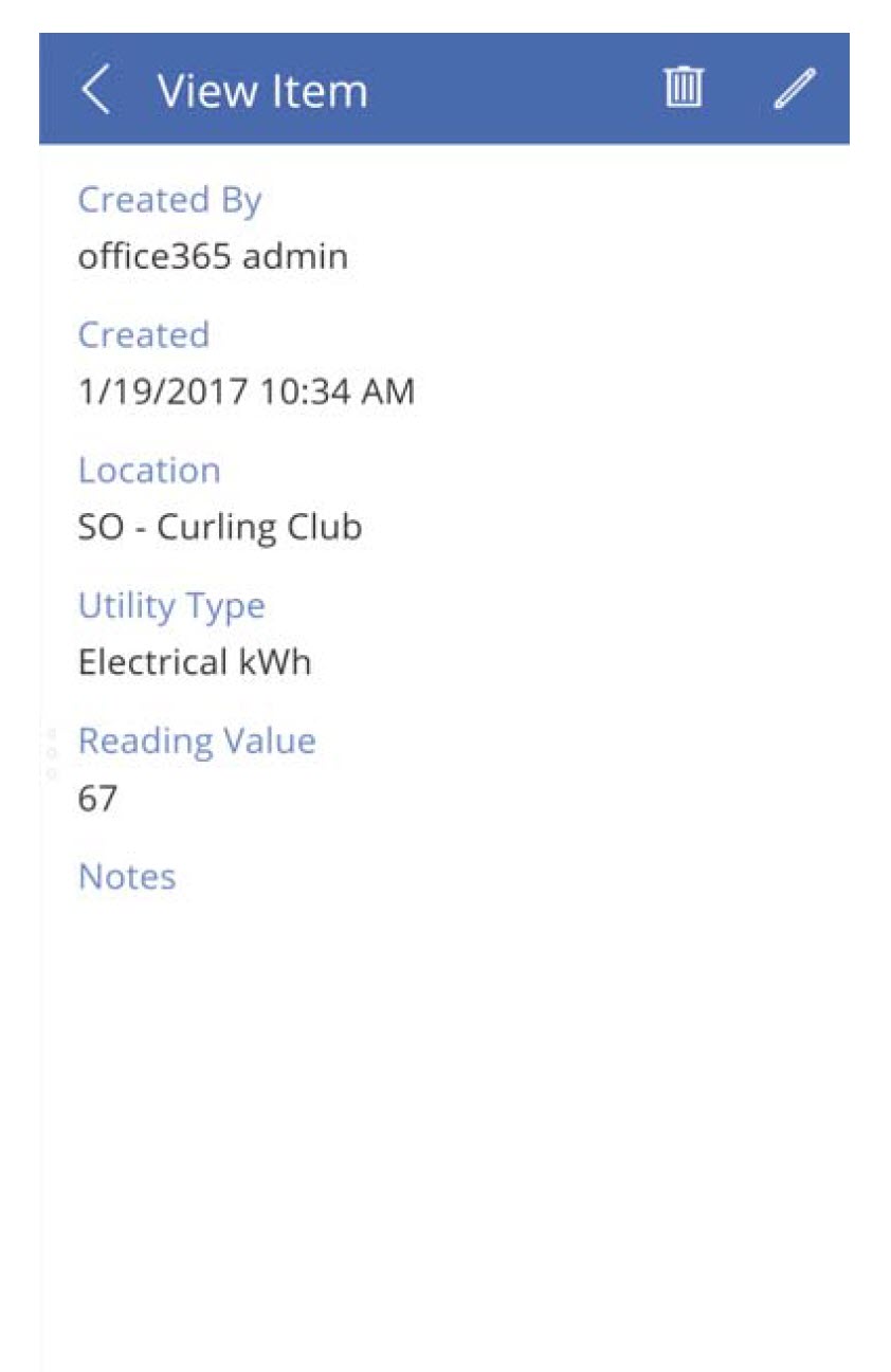 Regroove selected Microsoft PowerApps for the data entry solution because it is simple to setup (“download, login, and ready to go”). It also requires little-to-no end user training for building engineers to open the app and select the Meter Reading form to enter data into the form fields.
